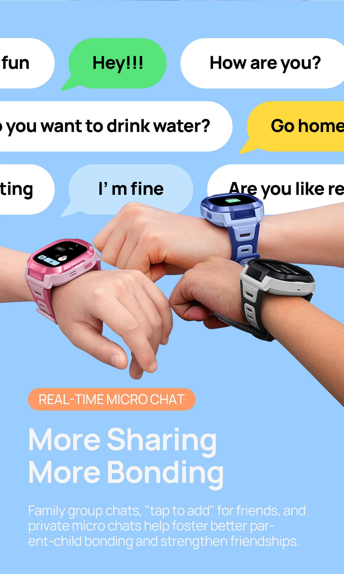 Social & Entertainment: Add friends, Voice micro-chat (between watches), Family group chat, Social interactions between watch and phone
