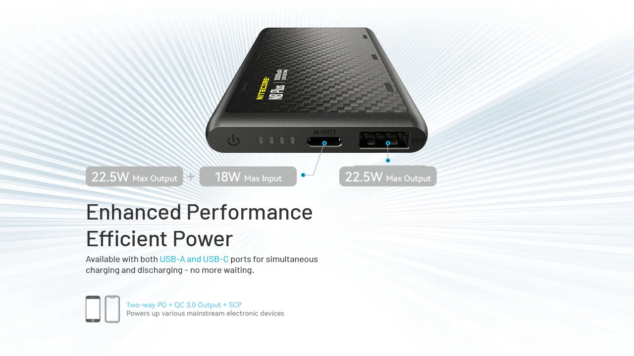 The Nitecore NB Plus 10,000mAh Power Bank is engineered for outdoor enthusiasts and travelers who need reliable power on the go. Featuring ultra-light carbon fiber construction, IPX7 waterproof protection, and fast charging capability, it’s the perfect companion for hiking, camping, or daily carry.