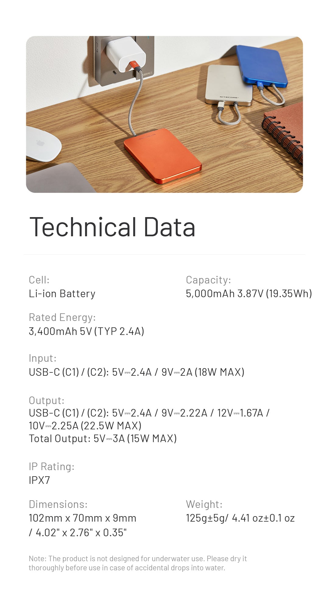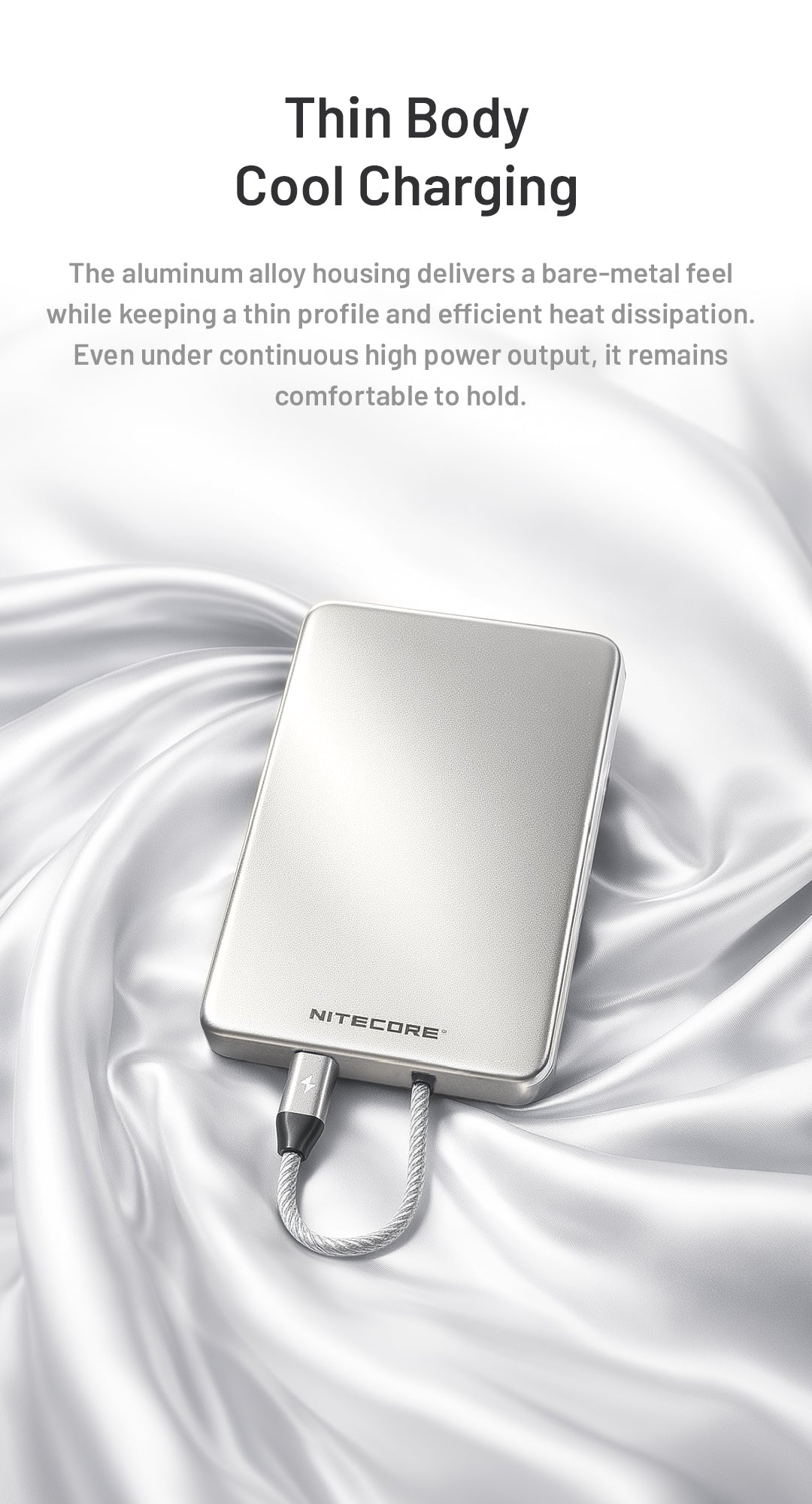 Four LED power indicators near the charging port let you check remaining battery at a glance. Crafted from durable aluminum alloy with a clean, modern finish and IPX7 waterproof protection, the POCKET 5 is built for everyday commutes, travel, and unpredictable weather. Thin enough for your pocket and powerful enough for real life, it’s magnetic convenience refined with efficient wired performance.