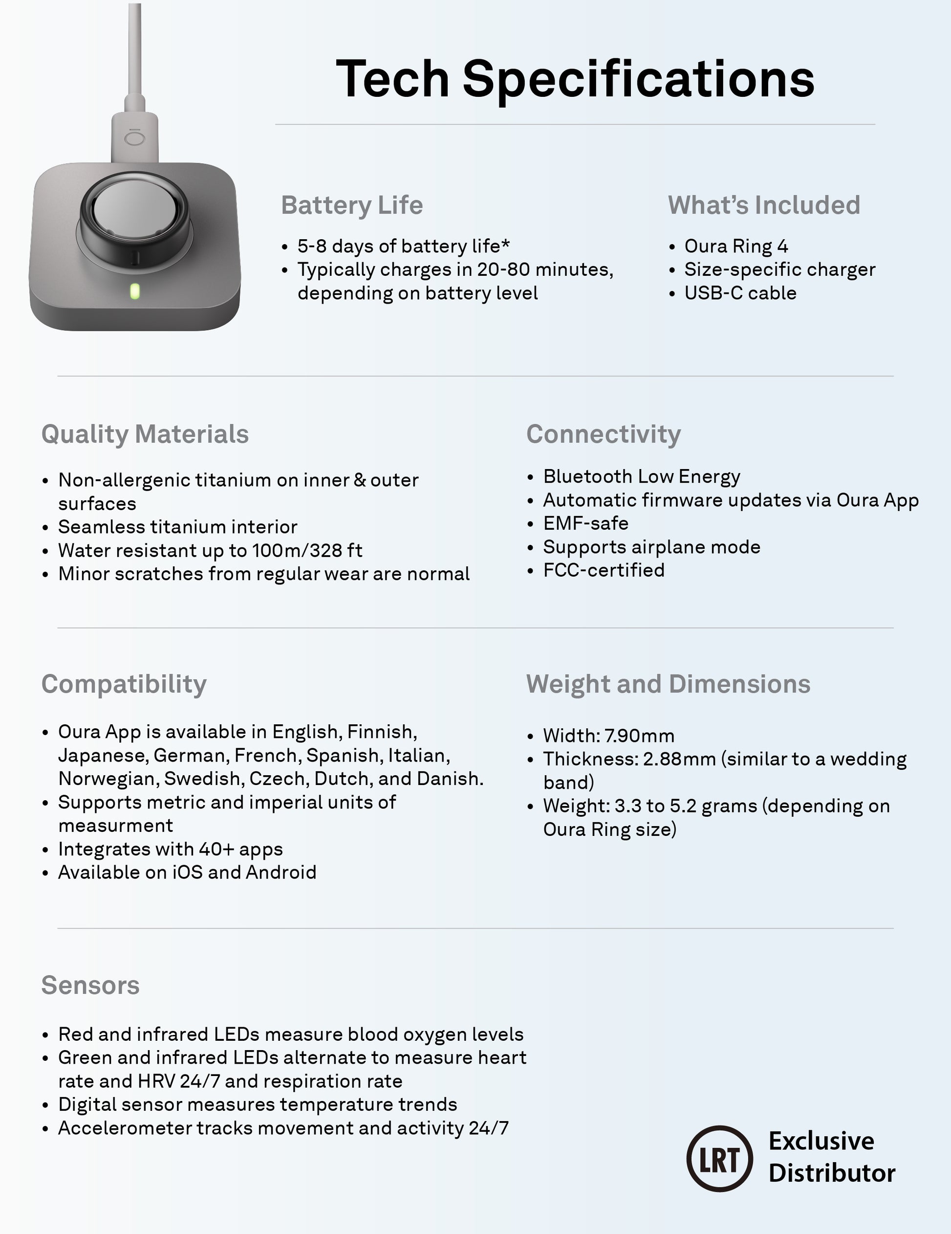 | Accessories Included | Oura Ring, Charging Dock & Cable-USB |